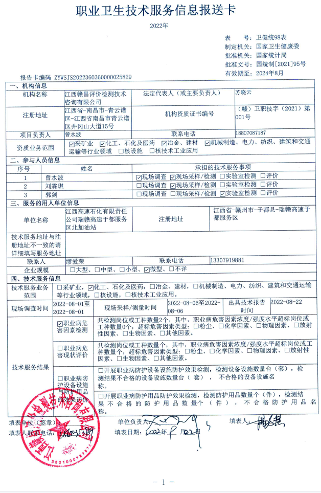 下一篇:江西高速石化有限責任公司瑞贛高速于都服務(wù)區(qū)南加油站工作場所職業(yè)病危害因素檢測報告