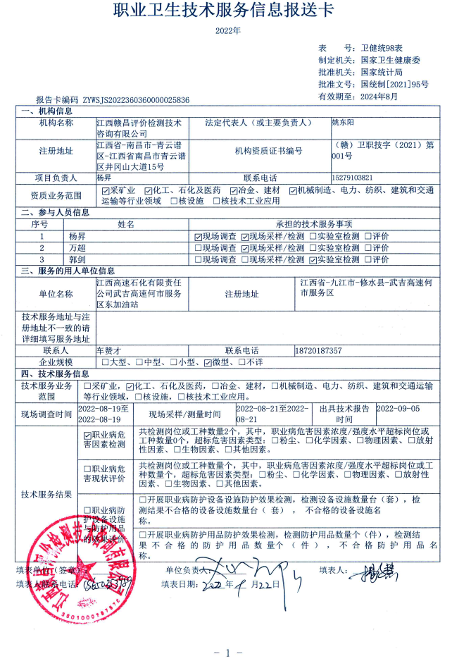上一篇:江西高速石化有限責(zé)任公司泉南高速興國服務(wù)區(qū)南加油站工作場所職業(yè)病危害因素檢測報告