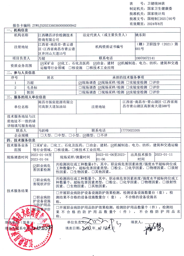 南昌市振宸能源有限公司高新大道加油站工作場所職業(yè)病危害因素檢測報告