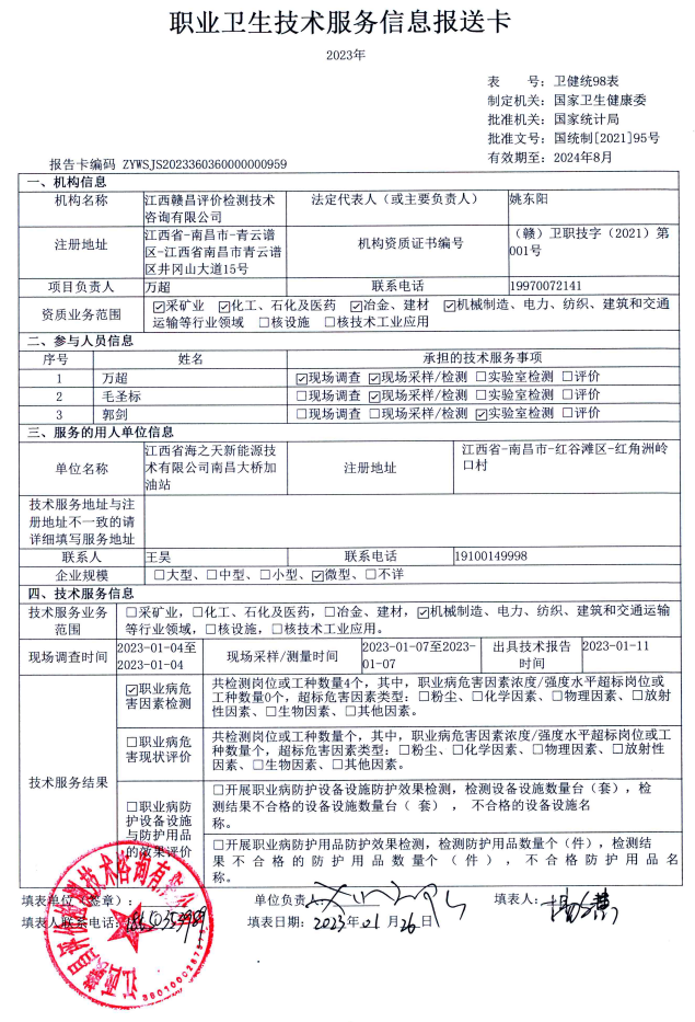 下一篇:江西省海之天新能源技術(shù)有限公司南昌中馳加油站工作場(chǎng)所職業(yè)病危害因素檢測(cè)報(bào)告