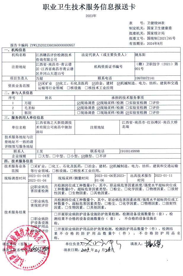 下一篇:中國(guó)石化銷售股份有限公司江西南昌石油分公司新建分公司加油站工作場(chǎng)所職業(yè)病危害因素檢測(cè)報(bào)告