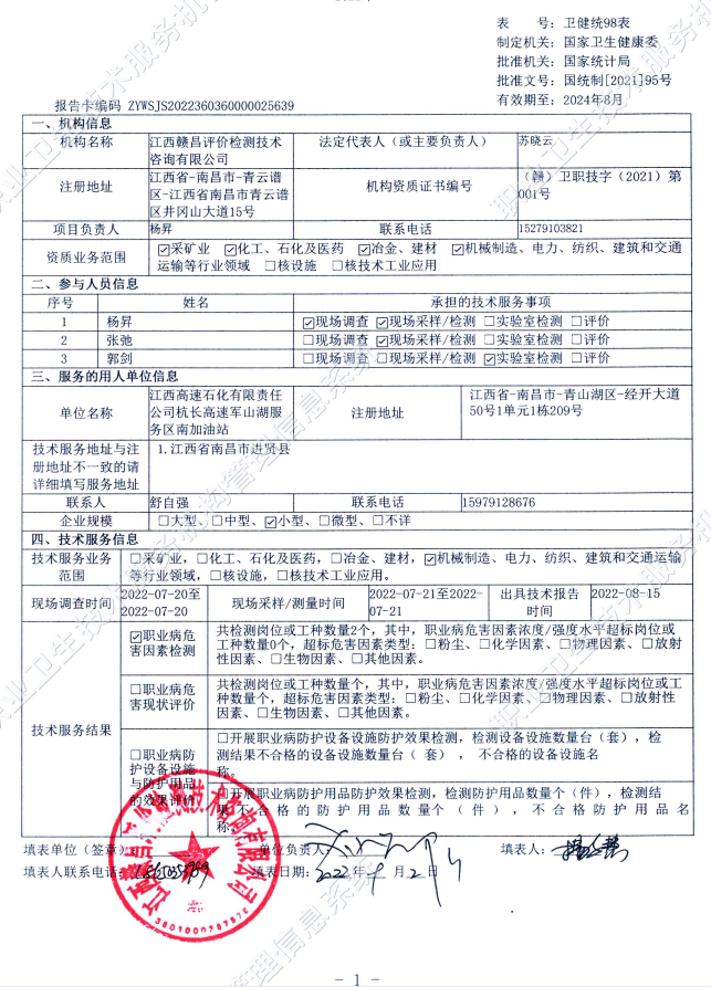 下一篇:江西高速石化有限責(zé)任公司昌寧高速豐城東服務(wù)區(qū)東加油站工作場(chǎng)所職業(yè)病危害因素檢測(cè)報(bào)告