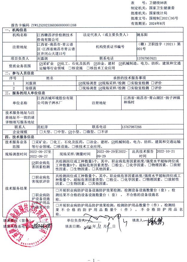 下一篇:江西洪城環(huán)境股份有限公司朝陽水廠工作場所職業(yè)病危害因素檢測報告