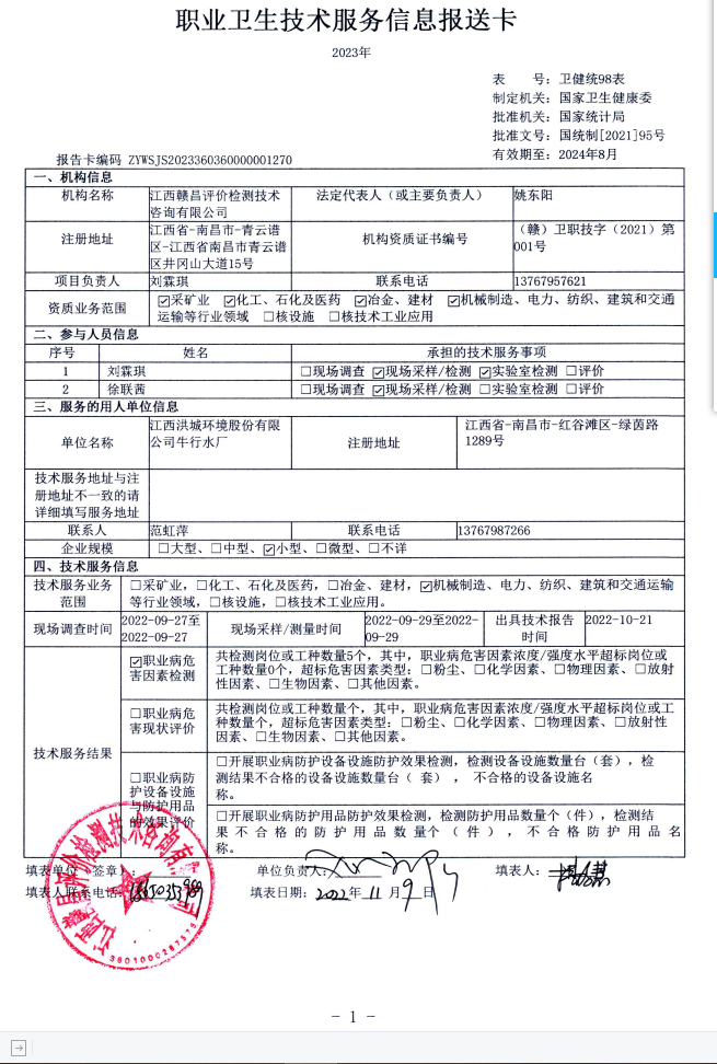 上一篇:江西洪城環(huán)境股份有限公司青云水廠工作場(chǎng)所職業(yè)病危害因素檢測(cè)報(bào)告