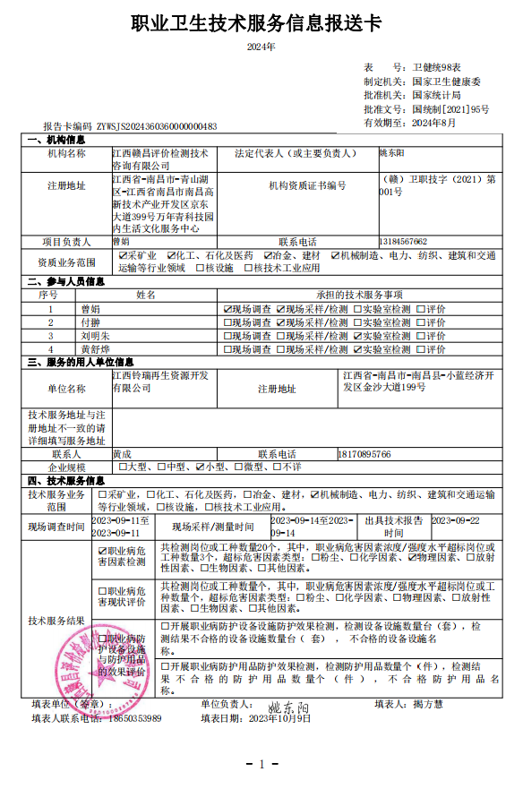 上一篇:聯(lián)熹(南昌)污水處理有限公司工作場(chǎng)所職業(yè)病危害因素檢測(cè)報(bào)告