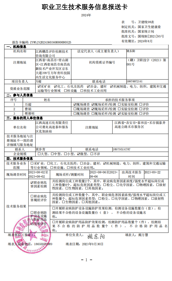 江西高速石化有限責(zé)任公司莆炎高速泰和服務(wù)區(qū)北加油站