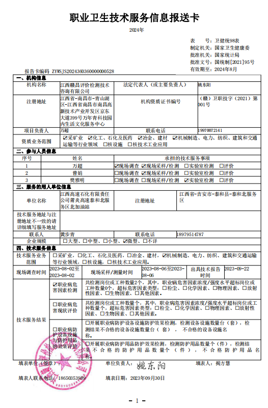 江西高速石化有限責任公司莆炎高速泰和北服務(wù)區(qū)北加油站