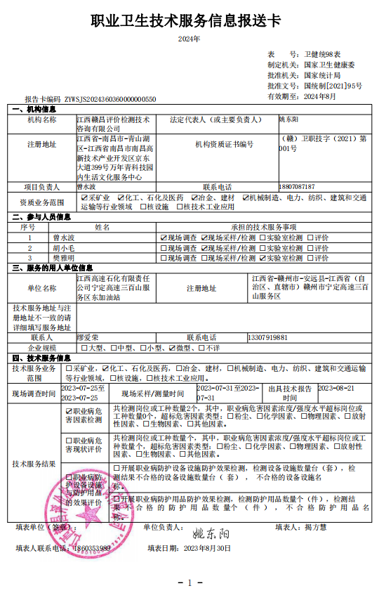 江西高速石化有限責任公司寧定高速三百山服務區(qū)東加油站