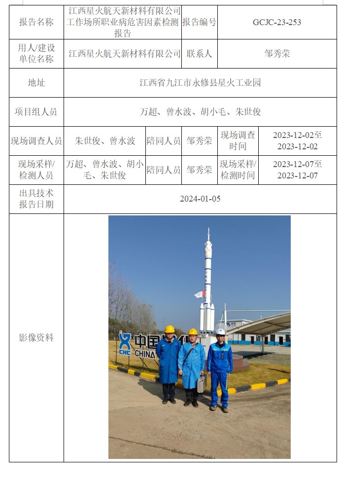 江西星火航天新材料有限公司工作場所職業(yè)病危害因素檢測報告