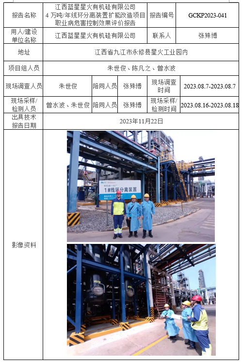 江西藍(lán)星星火有機(jī)硅有限公司 4萬噸/年線環(huán)分離裝置擴(kuò)能改造項目 職業(yè)病危害控制效果評價報告