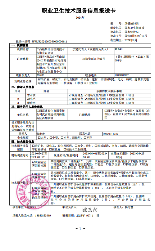 下一篇:江西高速石化有限責任公司泉南高速泰和東服務區(qū)南加油站工作場所職業(yè)病危害因素檢測報告