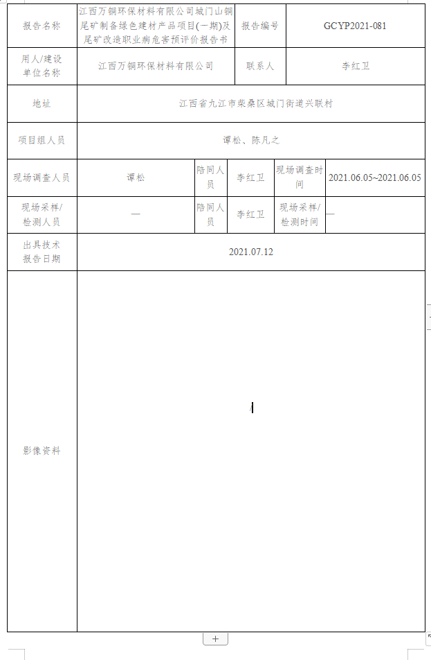 上一篇:江西省修水香爐山鎢業(yè)有限責(zé)任公司職業(yè)病危害現(xiàn)狀評價報告書GCXP2023-006