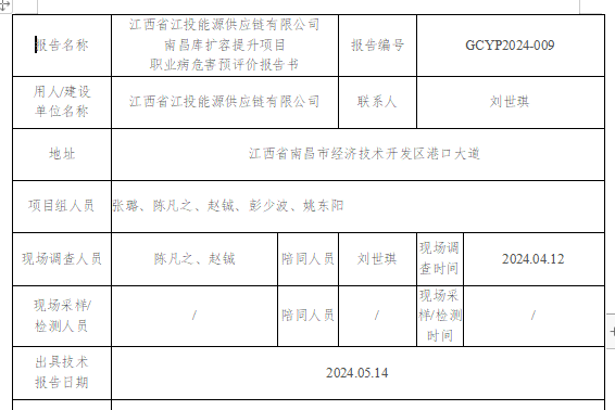 下一篇:九江天賜高新材料有限公司新能源工廠擴(kuò)建改造項目職業(yè)病危害預(yù)評價報告書GCYP2024-005