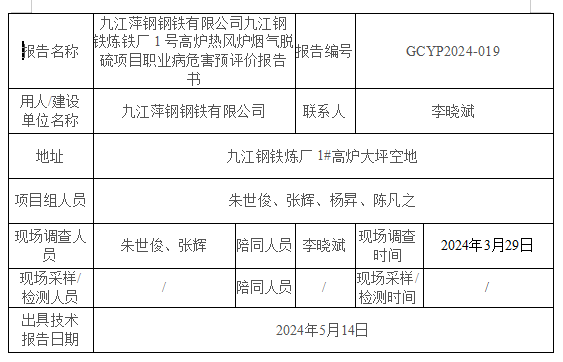 下一篇:九江天賜資源循環(huán)科技有限公司廢舊鋰電池料資源化循環(huán)利用項(xiàng)目職業(yè)病危害控制效果評(píng)價(jià)報(bào)告書GCKP2024-008