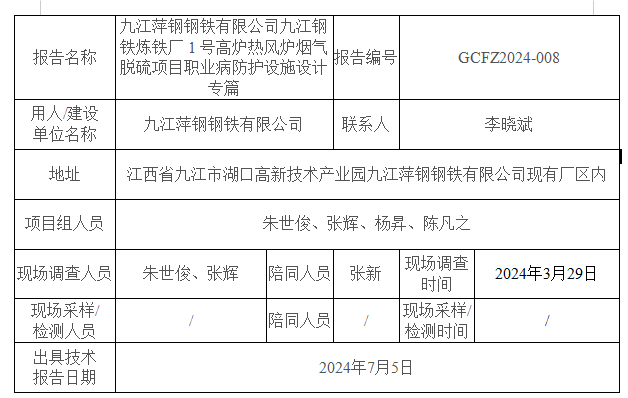 下一篇:九江萍鋼鋼鐵有限公司 九江鋼鐵中板、高棒、優(yōu)鋼線、普棒加熱爐煙氣脫硫改造項目職業(yè)病防護(hù)設(shè)施設(shè)計專篇GCFZ2024-007