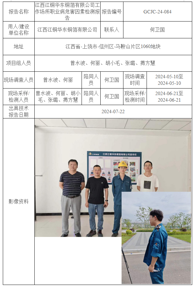 江西江銅華東銅箔有限公司工作場所職業(yè)病危害因素檢測報告GCJC-24-084