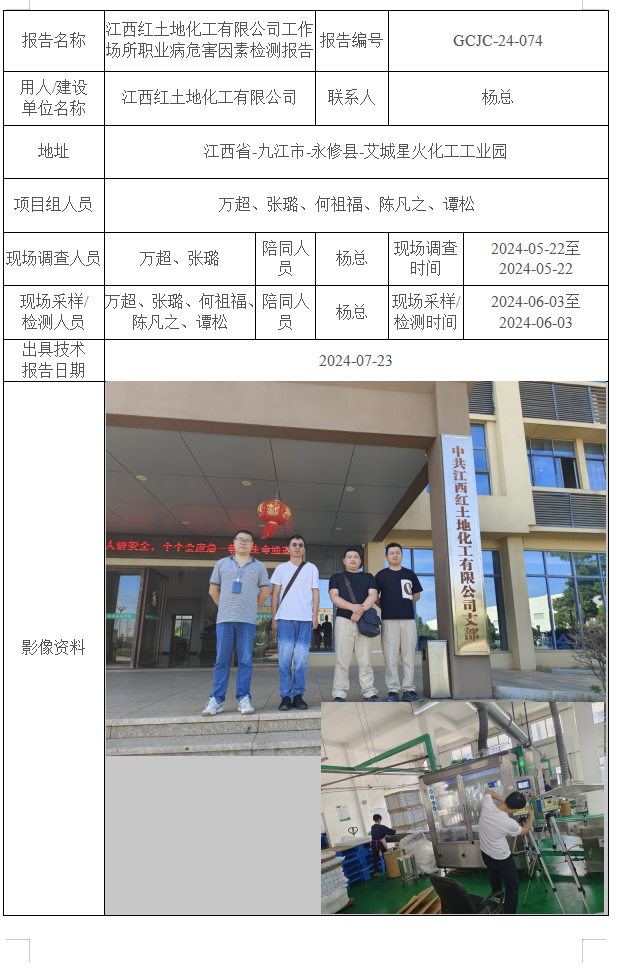江西紅土地化工有限公司工作場所職業(yè)病危害因素檢測報告GCJC-24-074