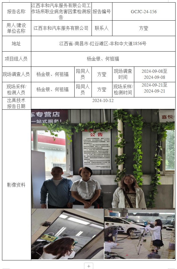 江西豐和汽車服務(wù)有限公司工作場所職業(yè)病危害因素檢測報告