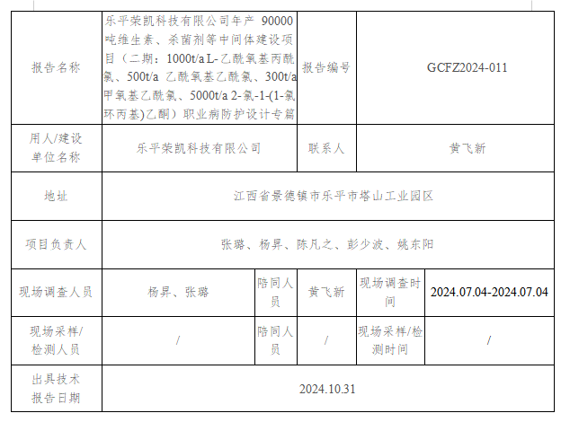 上一篇:樂平榮凱科技有限公司年產(chǎn) 90000 噸維生素、殺菌劑等中間體建設(shè)項(xiàng)目(一期:5000t/a 1,3-環(huán)己二酮)職業(yè)病防護(hù)設(shè)計(jì)專篇