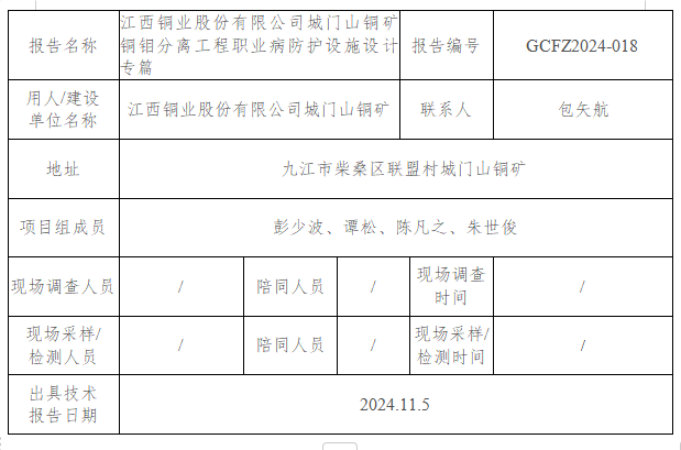 江西銅業(yè)股份有限公司城門山銅礦銅鉬分離工程職業(yè)病防護設施設計專篇