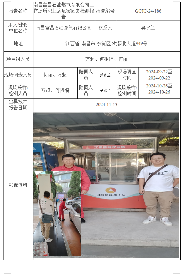南昌富昌燃氣有限公司白水湖加油站工作場所職業(yè)病危害因素檢測報告
