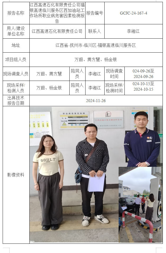 下一篇:江西高速石化有限責(zé)任公司東昌高速撫州服務(wù)區(qū)北加油站工作場(chǎng)所職業(yè)病危害因素檢測(cè)報(bào)告
