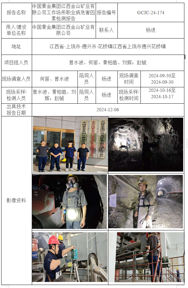 中國黃金集團(tuán)江西金山礦業(yè)有限公司工作場所職業(yè)病危害因素檢測報(bào)告