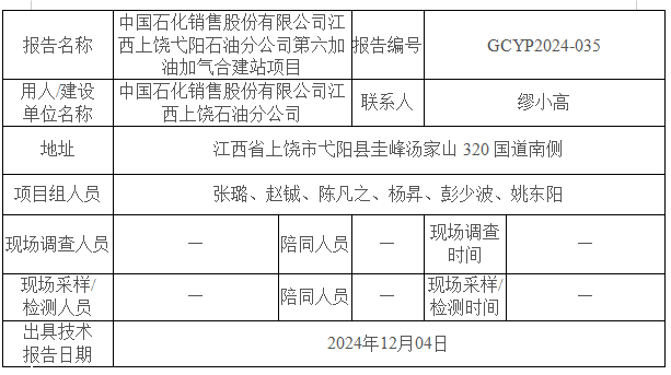 中國石化銷售股份有限公司江西上饒弋陽石油分公司第六加油加氣合建站項目