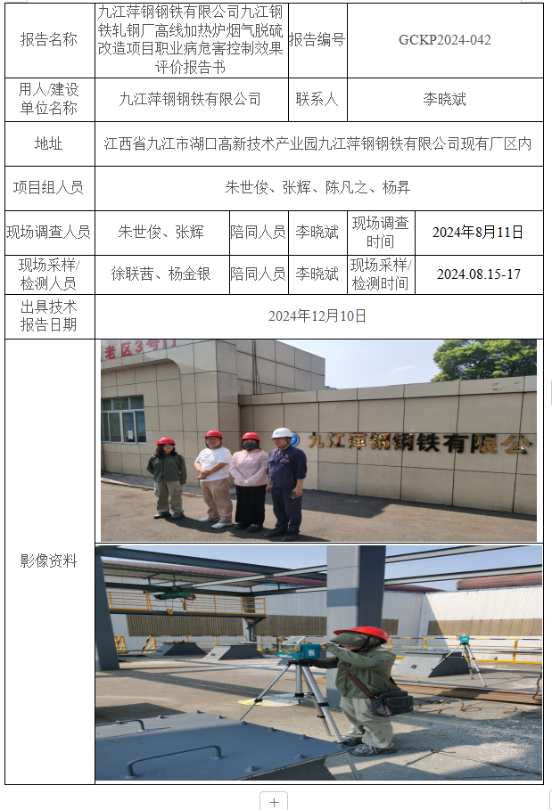 下一篇:九江萍鋼鋼鐵有限公司九江鋼鐵中板、高棒、優(yōu)鋼線、普棒加熱爐煙氣脫硫改造項目職業(yè)病危害控制效果評價報告書