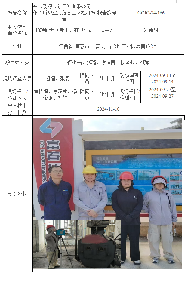 鉑瑞能源(新干)有限公司工作場(chǎng)所職業(yè)病危害因素檢測(cè)報(bào)告