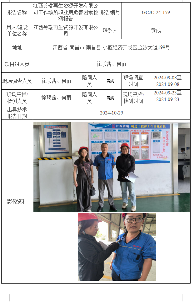 江西鈴瑞再生資源開發(fā)有限公司工作場所職業(yè)病危害因素檢測報(bào)告
