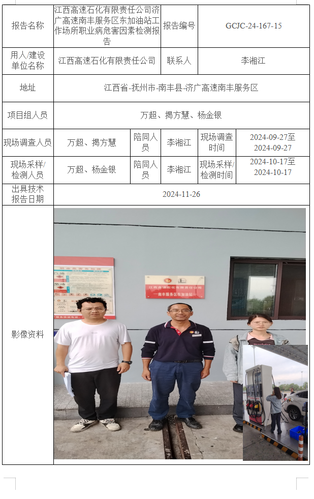 江西高速石化有限責(zé)任公司濟廣高速南豐服務(wù)區(qū)西加油站工作場所職業(yè)病危害因素檢測報告