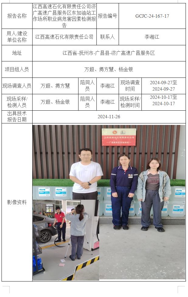 下一篇:江西高速石化有限責(zé)任公司濟廣高速廣昌服務(wù)區(qū)西加油站工作場所職業(yè)病危害因素檢測報告