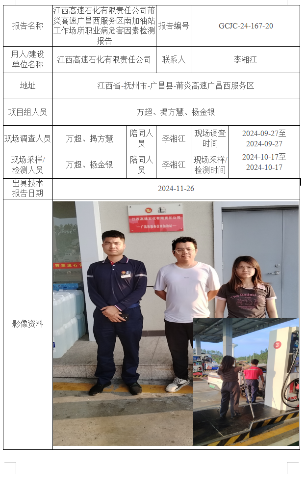 上一篇:江西高速石化有限責(zé)任公司莆炎高速?gòu)V昌西服務(wù)區(qū)北加油站工作場(chǎng)所職業(yè)病危害因素檢測(cè)報(bào)告