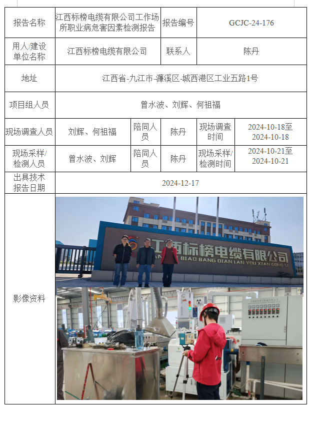 江西標(biāo)榜電纜有限公司工作場所職業(yè)病危害因素檢測報(bào)告