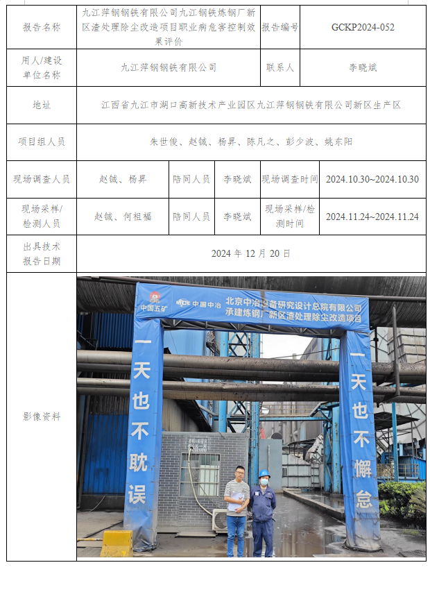 九江萍鋼鋼鐵有限公司九江鋼鐵煉鋼廠新區(qū)連鑄綜合除塵改造項目職業(yè)病危害控制效果評價