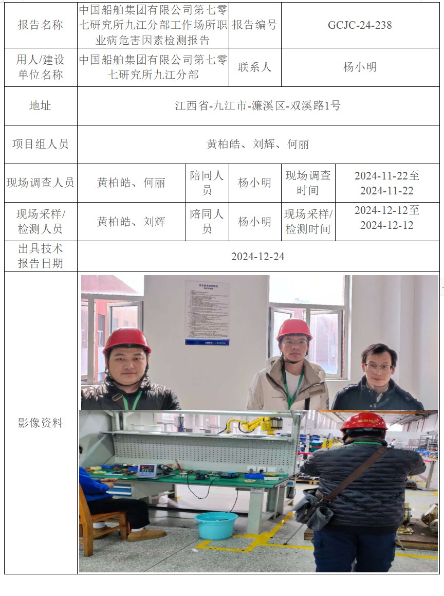 中國船舶集團(tuán)有限公司第七零七研究所九江分部工作場所職業(yè)病危害因素檢測報(bào)告