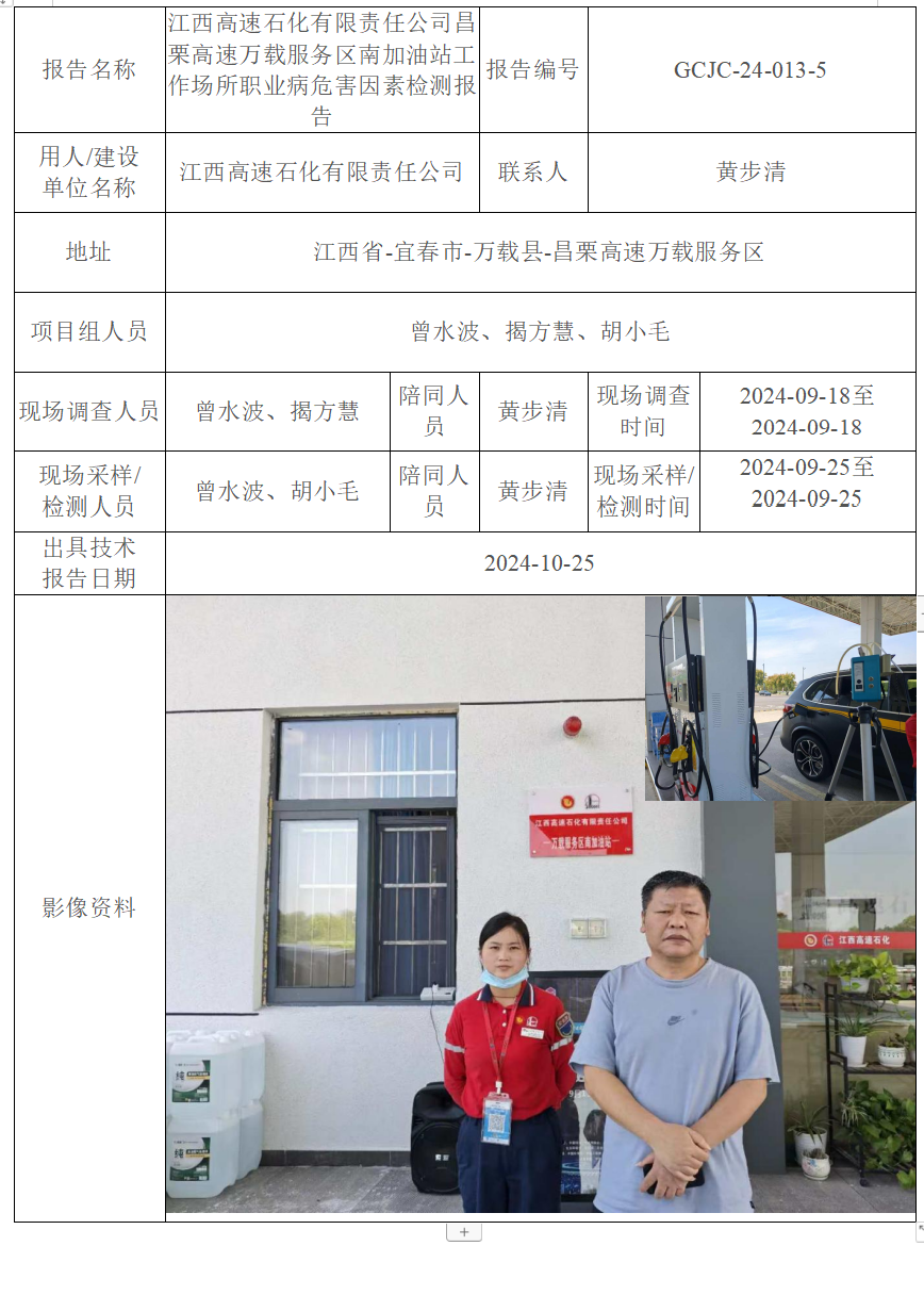 下一篇:江西高速石化有限責(zé)任公司昌栗高速萬(wàn)載服務(wù)區(qū)北加油站工作場(chǎng)所職業(yè)病危害因素檢測(cè)報(bào)告