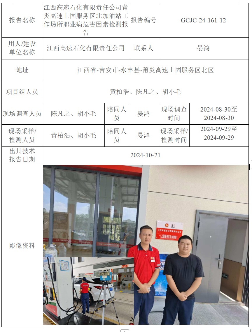 下一篇:江西高速石化有限責任公司永豐南服務區(qū)東加油站工作場所職業(yè)病危害因素檢測報告
