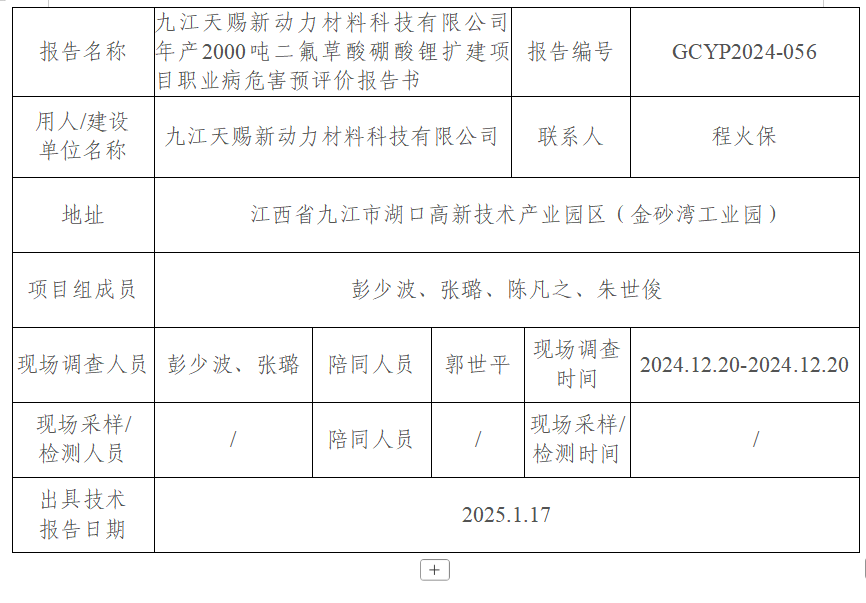 上一篇:九江天賜新動(dòng)力材料科技有限公司年產(chǎn)40000噸雙氟磺酰亞胺鋰改擴(kuò)建項(xiàng)目職業(yè)病危害預(yù)評(píng)價(jià)報(bào)告書