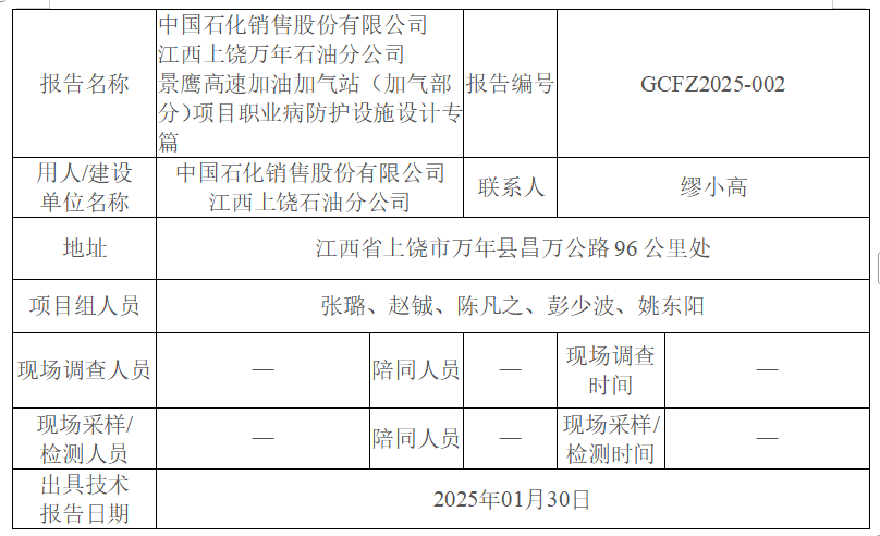 下一篇:中國石化銷售股份有限公司 江西上饒萬年石油分公司 青云加油加氣站(加氣部分)項目職業(yè)病防護設(shè)施設(shè)計專篇