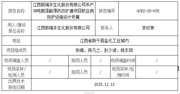 江西新瑞豐生化股份有限公司年產(chǎn)38噸脫落酸原藥改擴(kuò)建項(xiàng)目職業(yè)病防護(hù)設(shè)施設(shè)計(jì)專篇