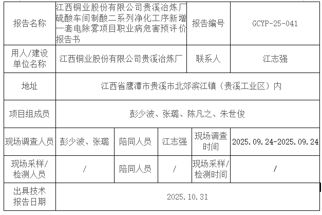 下一篇:江西銅業(yè)股份有限公司貴溪冶煉廠硫酸車間制酸二系列凈化工序新增一套電除霧項目職業(yè)病防護(hù)設(shè)施設(shè)計專篇