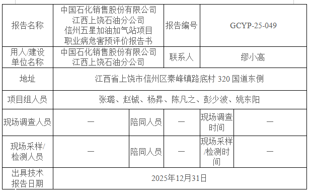 中國(guó)石化銷售股份有限公司江西上饒石油分公司信州五星加油加氣站項(xiàng)目職業(yè)病危害預(yù)評(píng)價(jià)報(bào)告書(shū)