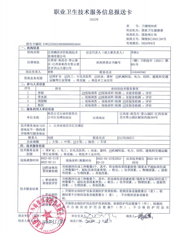 下一篇:南昌公交石油有限責(zé)任公司民營(yíng)加油站工作場(chǎng)所職業(yè)病危害因素檢測(cè)報(bào)告