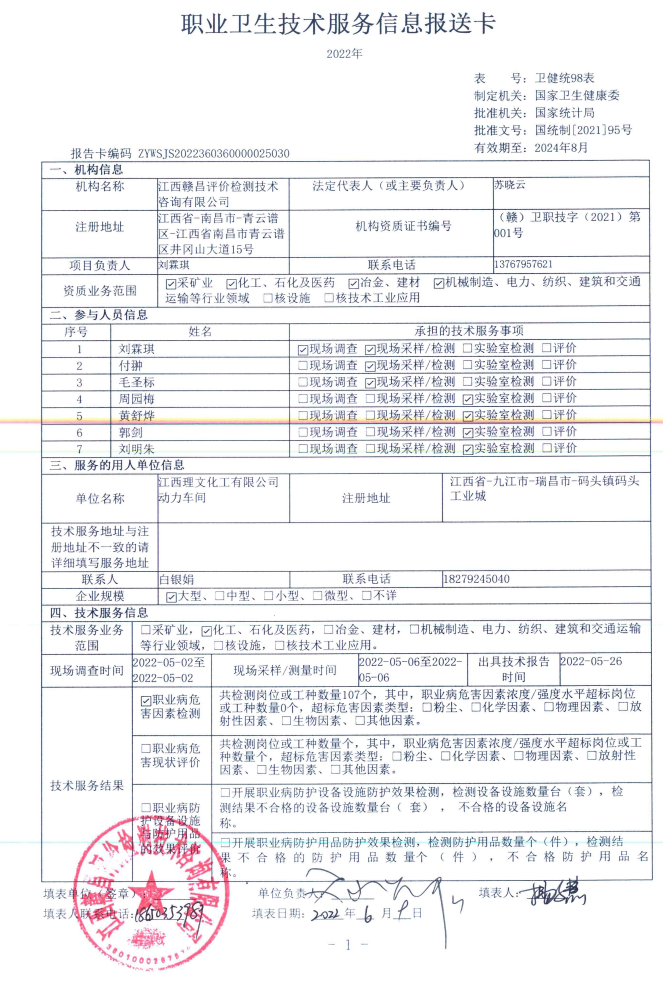 下一篇:江西理文化工有限公司全廠公用輔助設(shè)施、儲運設(shè)施工作場所職業(yè)病危害因素檢測報告