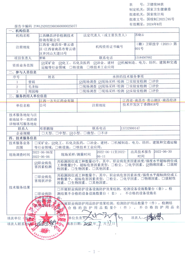 下一篇:江西理文化工有限公司30萬噸/年過氧化氫及配套項(xiàng)目工作場所職業(yè)病危害因素檢測報(bào)告